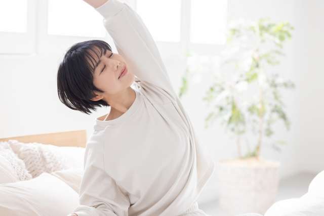 寝る前に深呼吸を3回。ゆっくり吸って、長く吐くことを意識しましょう。軽いストレッチや肩回しもおすすめです。筋肉がゆるみ、体温が少し下がることで、眠気が訪れてきます。